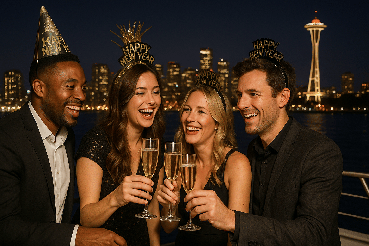 Ring in the New Year aboard a one-of-a-kind celebration on the waters of Puget Sound! Step aboard as the sun sets behind the Olympic Mountains and Seattle’s skyline begins to sparkle. Enjoy music, laughter, and festive drinks as we cruise into the evening—watching the city lights shimmer across the water and the Space Needle glow in anticipation of midnight. This unforgettable voyage blends the magic of a Seattle sunset with the excitement of a brand-new year.